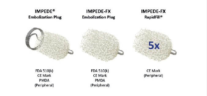 The Impede family includes the Impede embolisation plug, Impede-FX plug and Impede-FX RapidFill.